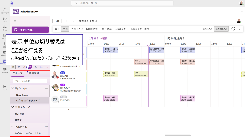 ScheduleLookは、Teamsアプリ上、Webアプリ上で利用できます。