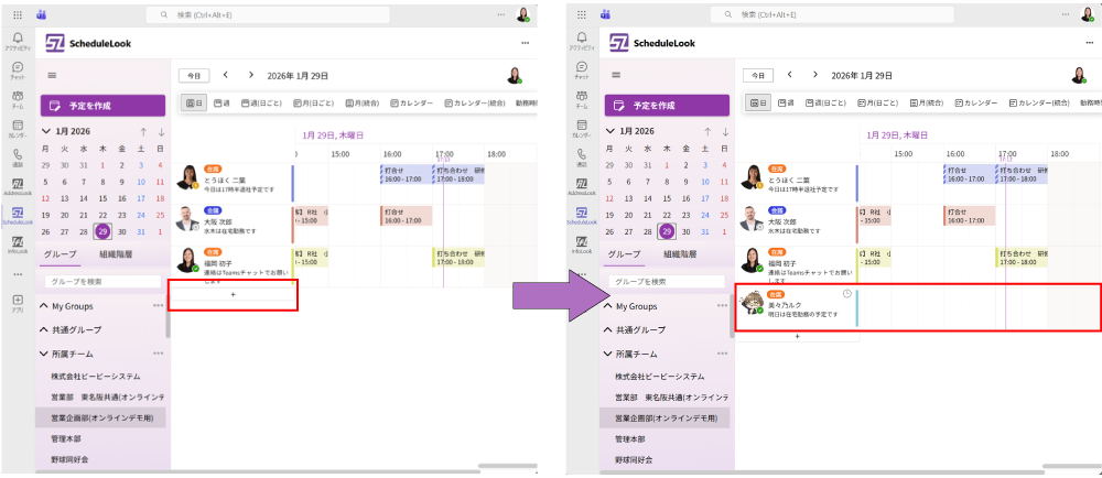 一部ユーザーを表示したまま、予定作成も行うことができます。