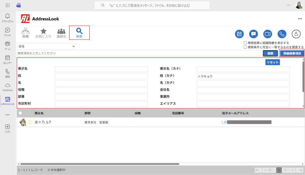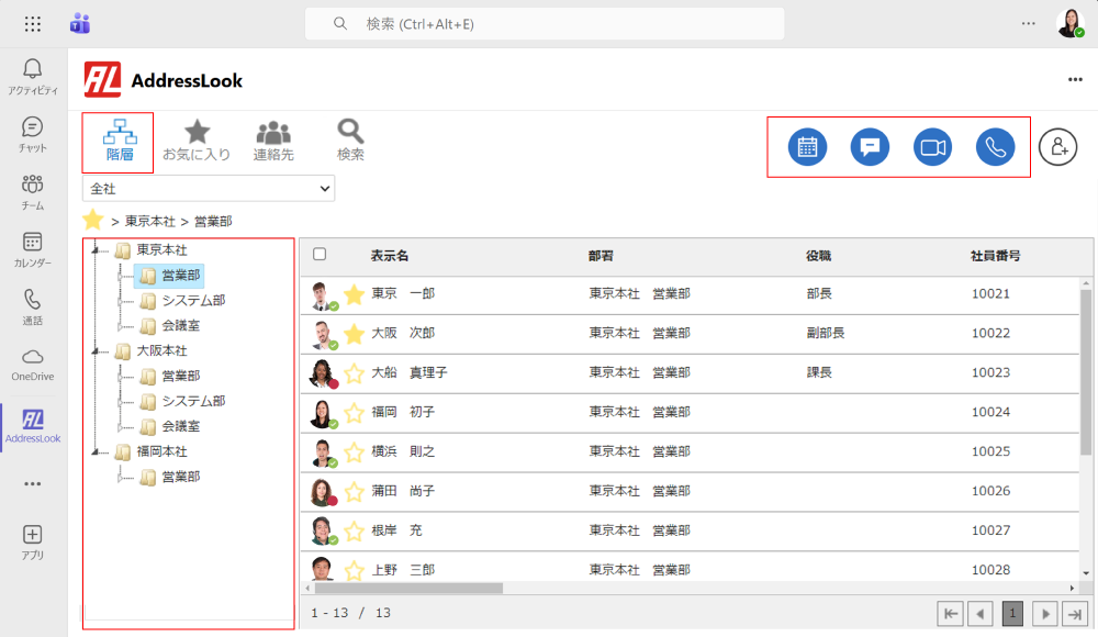 Teamsの宛先選択が直感的にできる階層型アドレス帳