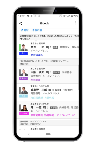 スマホから組織のアドレス帳・お気に入り参照、メール/電話/SMS送信が可能になります。 2026年春、リリース予定です。