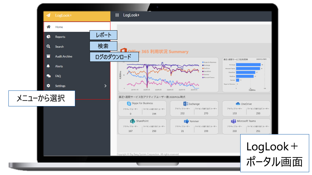 LogLook+は、Microsoft 365各機能のログをクラウド上で収集・保存・可視化できるログ管理ツールです。