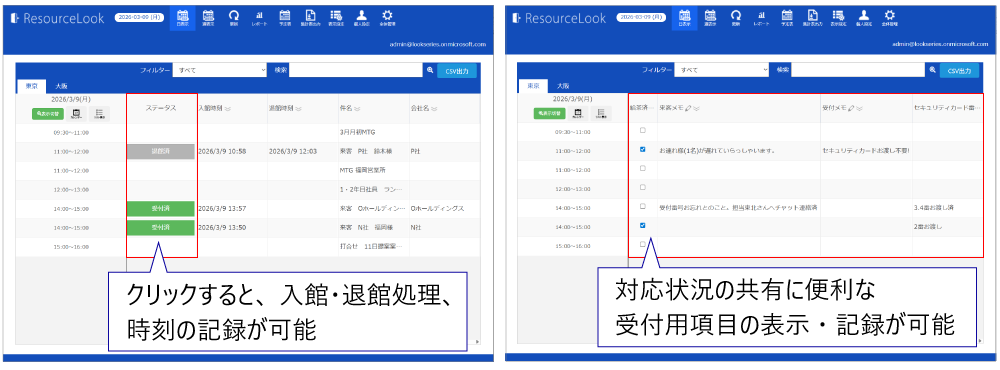 これにより、会議担当者と受付担当者の情報共有を効率的に行うことができます。