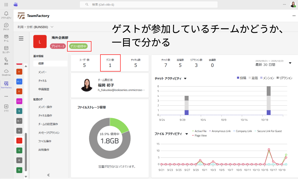 ファイル操作やゲスト参加チームなど一目で確認